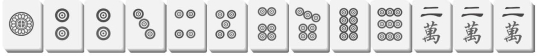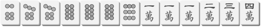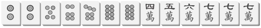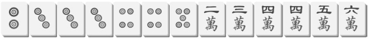 一个星期六的下午,朋友来访,大家玩起了麻将。我和小罗做搭档。下面这手牌是小罗刚把条子打完形成的。
