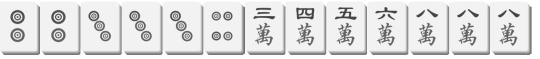 之后,出现2筒(之前已经出现过),立马叫碰,然后放飞8万。