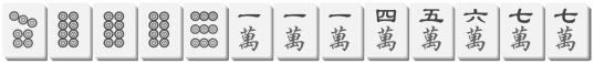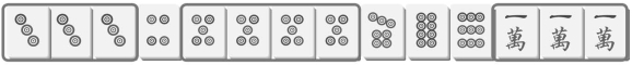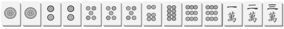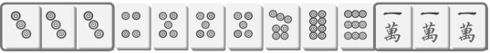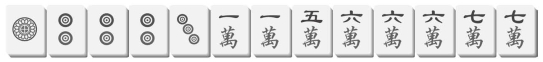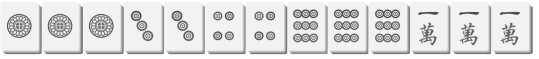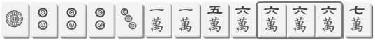 上家打3筒,毫不犹豫地碰掉,然后退1万。