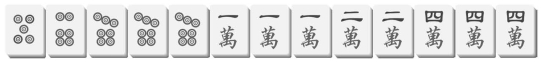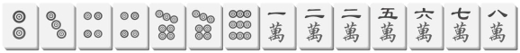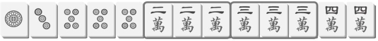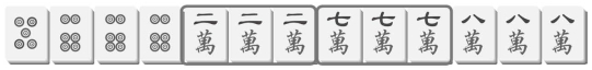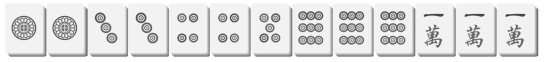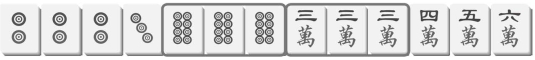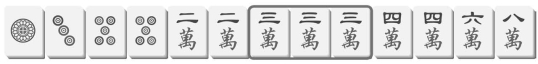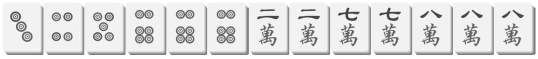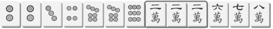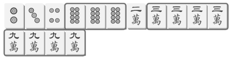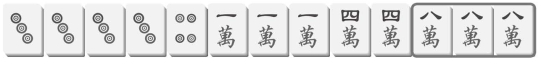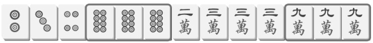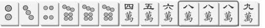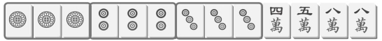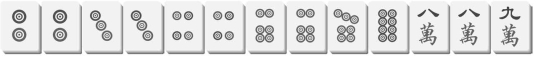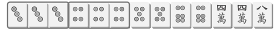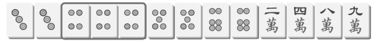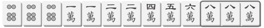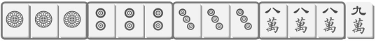 相继碰掉后,分别退8筒,9万,牌型变为: