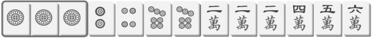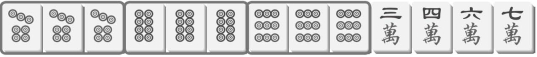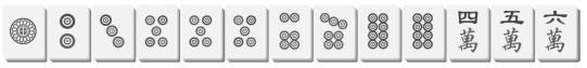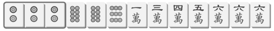 打3筒,听牌4、5、7万,3个听,机会数=9;