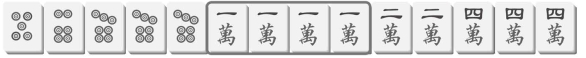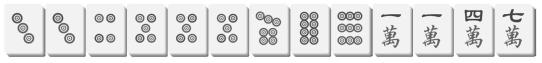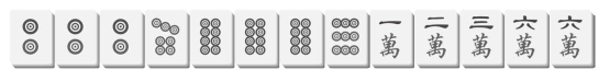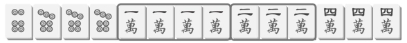2020年在去四川米易的途中路过雅安,当晚在宾馆里无事,大家玩起了麻将。下面这手牌是刚刚把条子打完形成的。