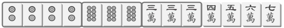 当牌桌上出现3万时,毫不犹豫叫碰,然后退7筒。