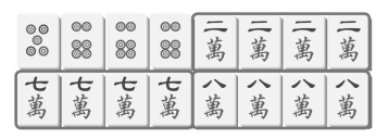 如果手上有112233、778899这样的牌型,一旦桌面上出现3、7张要毫不犹豫地碰掉。通常情况下,3、7张被碰之后,可以快速形成111222333或777888999这样的三副刻子牌;因为3、7张被碰,1、2、8、9多半是捂不住的,这种牌型是典型的进攻型牌型。