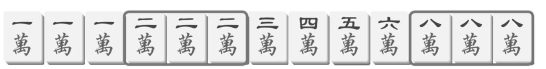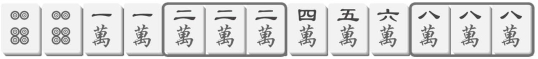 第一,通常情况下,与刻子111、222、888、999相邻或间张相邻的单张是2、3、7、8,因为它们一旦被碰,大概率会逼出相邻的刻子或对子;如果把刻子和单张换成是中间张,则条件通常不成立。