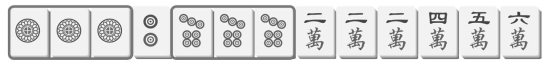 桌面情况:三家筒子,三家万子,两家条子;外面有一暗杠。