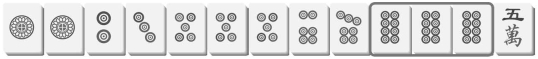 2.中间的对子,视个人的牌风而定:牌风稳健者,不碰为宜。牌风激进者,碰牌为宜。碰牌的好处是比较主动,碰牌对外面三家的影响大,对自己影响小,因为剩下的对子既可碰也可摸,主动权仍在自己手上。