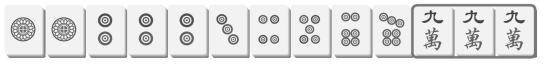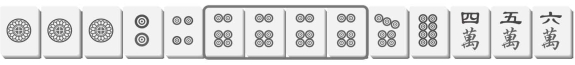 这样的话,进2、3、4、7、8、9筒,都可以下叫,机会数=6×4-4=20,数值这么大,保住暗杠的胜利果实应该没有问题。