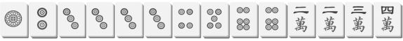第一,不杠6筒,打4万或5万,只要进1、2、3、4、9筒,都可以清一色带钩下叫。这种打法比较激进,有一定风险。