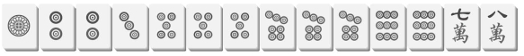 2018年春节期间,亲朋好友聚集一堂,休闲时免不了打打牌,那天战绩不佳,开局后很久没有胡牌,虽然输的都是小胡,但也够惨了。下面这手牌是开局不久,刚把条子打完后形成的。