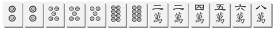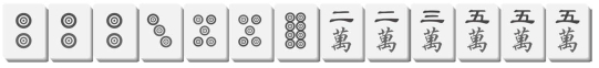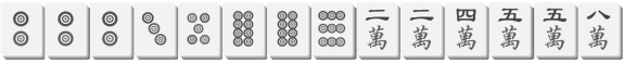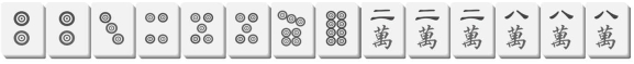 现在只要进5、8筒或2万就可以将对胡听牌。