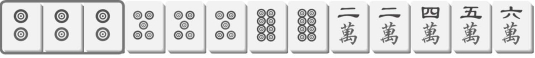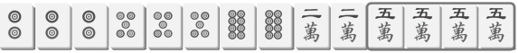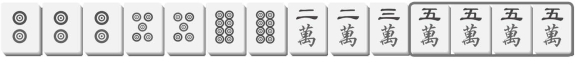 摸2筒明杠,再摸1万,双钩杠上花,赢三家。