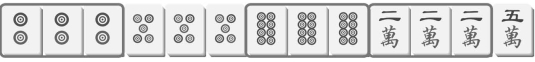 退3筒或9筒,根据牌情的发展再决定最后的方向;如果8筒和2、5万都能够顺利碰掉,那就最后单吊将牌5筒或8万。