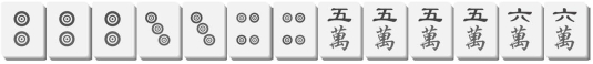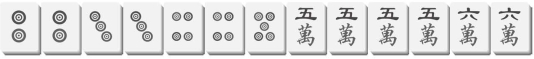 现在已经有了不错的得分:底分×2×3。之后,即便胡一个炮胡,总的得分也与龙七对的炮胡相当;如果是自摸那就赢得多了,如果摸在2筒上,还是双钩,简直没法比了。牌打到现在这个份上,算是打活了,进可攻,退可守。怎么也比死守龙七对,单吊一张牌强多了。