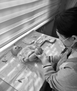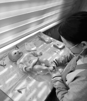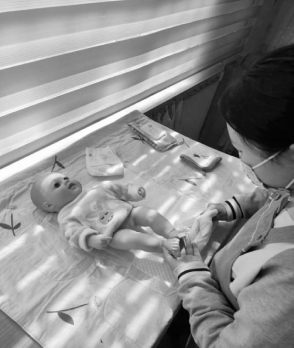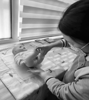 (2)细心观察,耐心等待回应。在整个尿布更换过程中,保育师要细心观察自己在实施操作行为后婴幼儿的表情、动作等行为反馈,并耐心等待这些行为反馈的发生,及时、灵活调整相关操作,让婴幼儿获得更好的体验感。