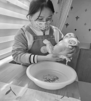 (3)婴幼儿参与,童心双向互动。保育师要注重尿布更换过程中婴幼儿的参与,形成双向互动,婴幼儿会感到自己是这个行为中的一份子,而不是任人摆布的,这一点需要保育师特别关注。回应性照护就是要保育师把爱心、耐心、细心贯穿到照护婴幼儿的每一个过程中。