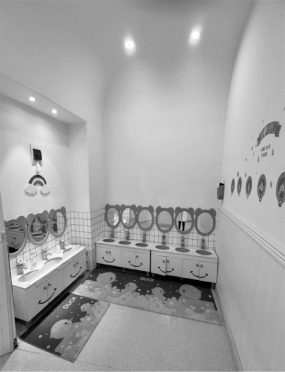 如厕环境的优劣对于幼儿是否能轻松如厕至关重要。保育师应该注重良好如厕环境的创设,因为丰富的环境既可以激发幼儿的如厕意愿,帮助幼儿理解养成良好如厕习惯的重要性,促使幼儿积极、主动、愉悦地如厕,又可以起到隐性的教育功能。如厕环境的创设可以从物质环境创设和人文环境创设两方面着手。