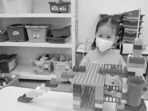 2.帕登的游戏分类 帕登认为儿童之间的社会性游戏与他人互动程度相关。以儿童社会性发展为依据,儿童的游戏行为可以分为无所事事行为(非游戏行为)、单独游戏(图5-6)、旁观行为(游戏的旁观者)(图5-7)、平行游戏(图5-8)、联合游戏和合作游戏。如表5-5所示。