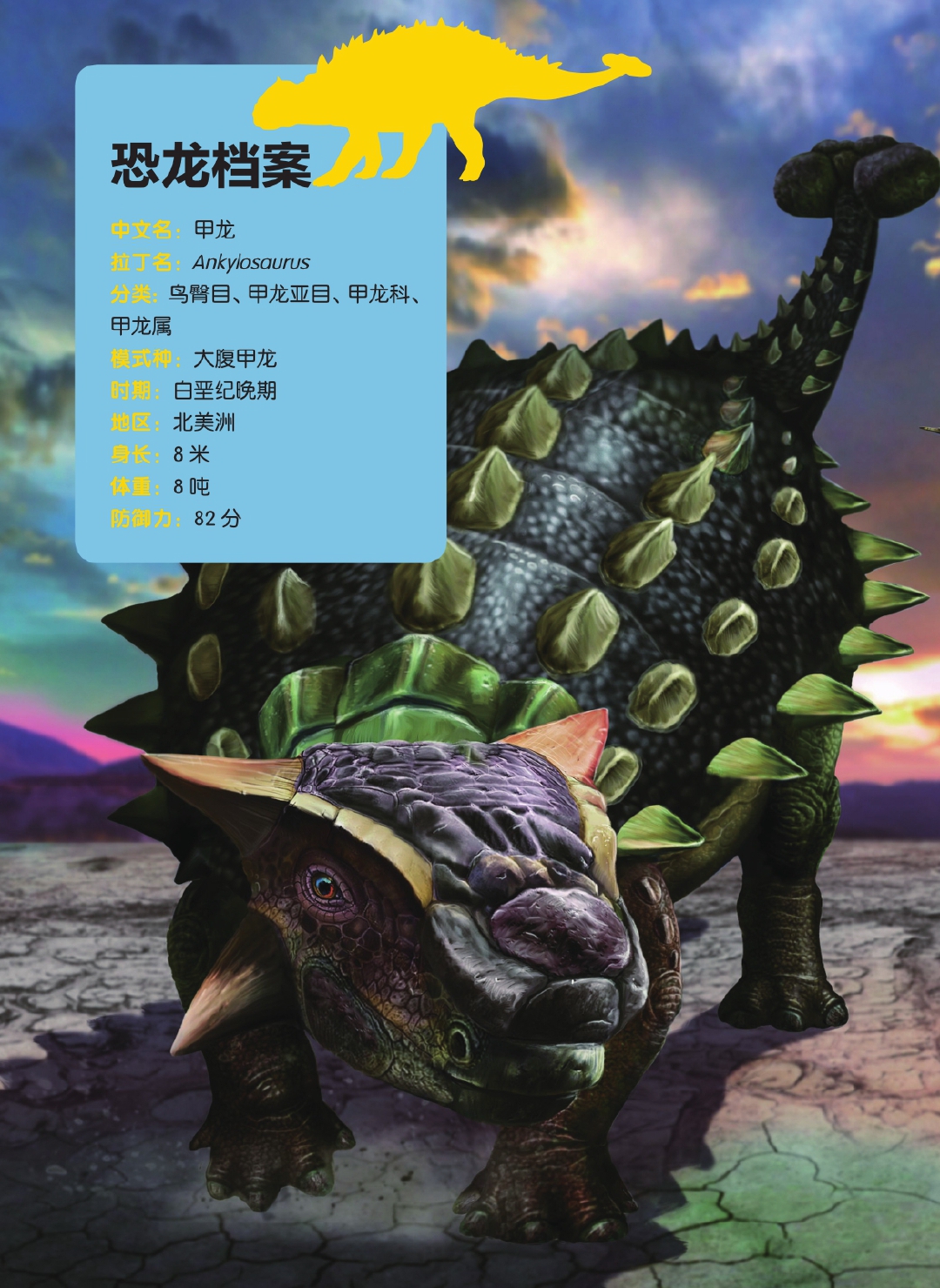 甲龙是最后的恐龙之一,它的体形和尾锤比其他甲龙科恐龙的都要大,这是因为它面对的对手最为强大。无论谁面对霸王龙这样的敌人,都必须有一两手过硬的本事才能保全性命。