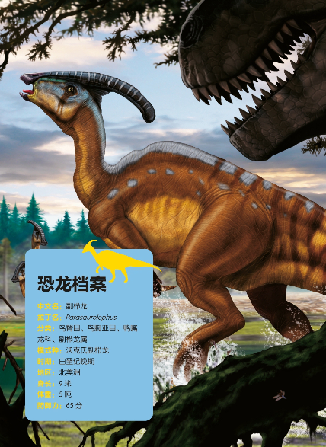 介绍副栉龙之前,先要提一下栉龙。栉龙的意思是头上有冠饰的龙,栉在中文里是梳子、篦子的意思,中文翻译者大概觉得它头上的冠饰像一把梳子,于是翻译为栉龙。而副栉龙的意思大体就是“跟栉龙比较接近”“跟栉龙有点像”。