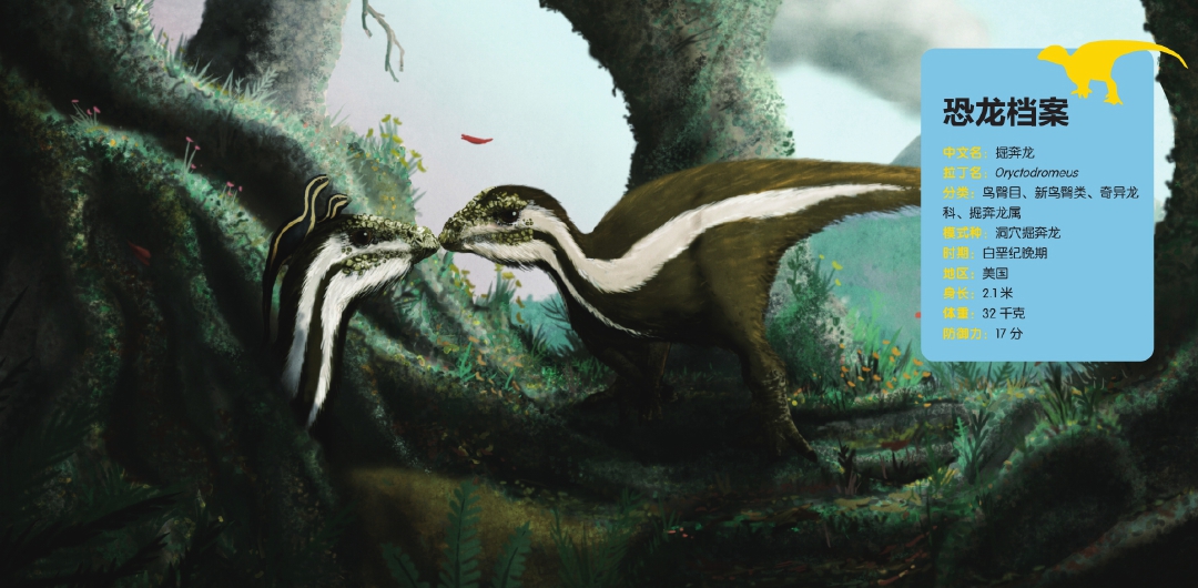 在恐龙世界也是一样。面对来自肉食恐龙的威胁,植食恐龙或者靠庞大的体形,或者靠速度,或者靠种群优势,或者靠尖角尾刺和装甲来进行防御。而掘奔龙这种小型恐龙靠的则是打洞。