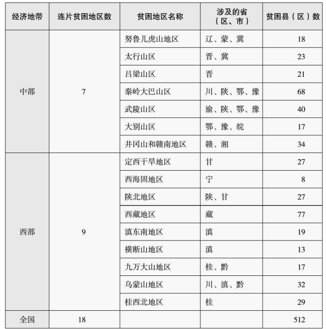 (一)20世纪80—90年代划定了18个集中连片贫困地区