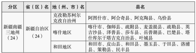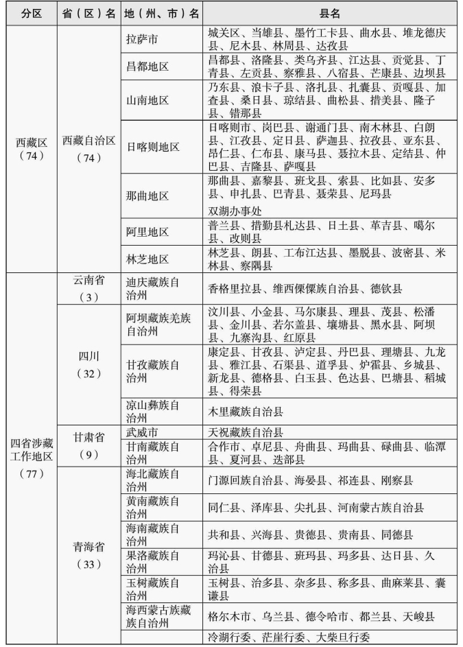 表1-3 实施特殊扶持政策的西藏、四省涉藏工作地区、新疆南疆三地州分县名单