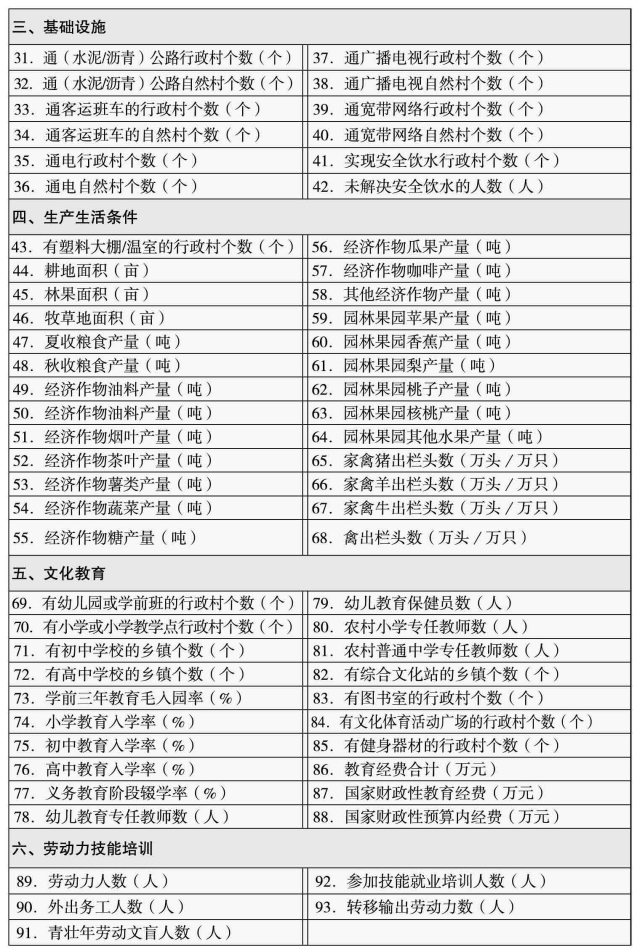 6.行政村个数,是指经上级政府批准,滇西边境山区贫困县的农村中按居住地区设立的基层群众性自治组织的个数。含农村社区。