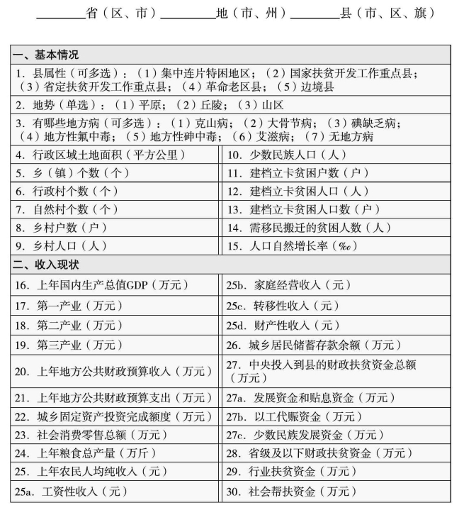 (一)县级多维贫困识别数据库建档立卡指标体系