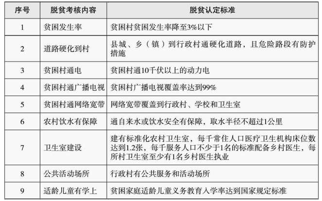 资料来源:根据《云南省贫困县退出工作实施方案》中“贫困村脱贫认定内容及标准”整理而得。
