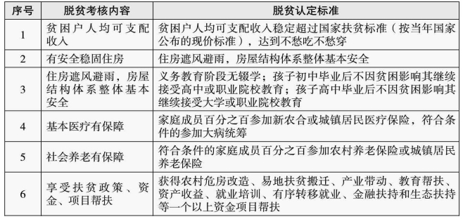 资料来源:根据《云南省贫困县退出工作实施方案》中“贫困户脱贫认定内容及标准”整理而得。