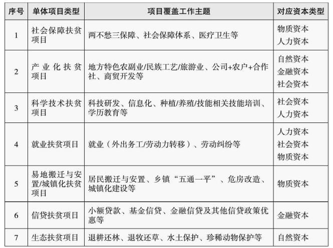 表8-4 扶贫项目类型、覆盖工作主题及其对应资本类型表