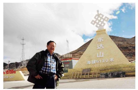 在海拔5130米的东达山口留影(2016年摄)