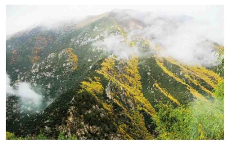 再往前走,尼洋河上有一座崖,人们称之为“中流砥柱”。这块巉岩像一枚带纽的四方印章,有一幢别墅大小,矗立在尼洋河激流中心。河水冲击到这块巨石上,溅起浪花,一路清唱而去。“中流砥柱”背靠神佛山,相传这是工布地区的守护神工尊德姆修炼打坐时的宝座。“中流砥柱”位于尼洋河中游,其所处在的位置山势险峻,陡象横生。石柱上长着一棵松树,并有很多植被装点,远远眺望,十分壮观。