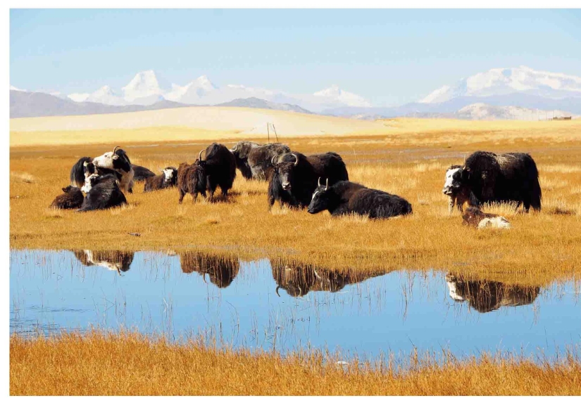 我们继续前行,到了号称是世界海拔最高的小镇——仲巴县帕羊镇,此地海拔4597米。蓝天白云下,苍黄色的草甸一望无边,有一群牦牛在这里很悠闲地吃草,有的躺着,有的站着。我们走过去拍照,这些牦牛安详地看着我们,可能它们已经习惯了经常有人过来拍摄它们。