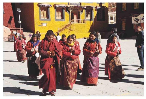 此行楚布寺,是来探寻纳人信仰藏传佛教噶举教派的母寺。我过去采访过一些噶举派纳西僧人,他们对我讲过如何经历千辛万苦来楚布寺修行三年三月三日三时学经修行的经历。很多纳西高僧都在这个寺里修行过。