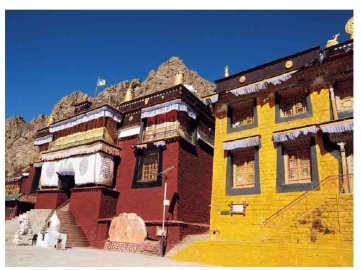 2016年10月25日,我们去往拉萨市堆龙德庆区。藏传佛教噶举派的主寺楚布寺位于堆龙德庆区西北的楚布沟内,在楚布河的上游,距拉萨有70多千米,海拔4500多米。楚布寺历史悠久,始建于1187年,是藏传佛教噶举派传世者、第一任噶玛巴堆松钦巴(1110—1193)创建的,距今已有800年的历史。这座寺庙是藏传佛教活佛转世制度的发源地。