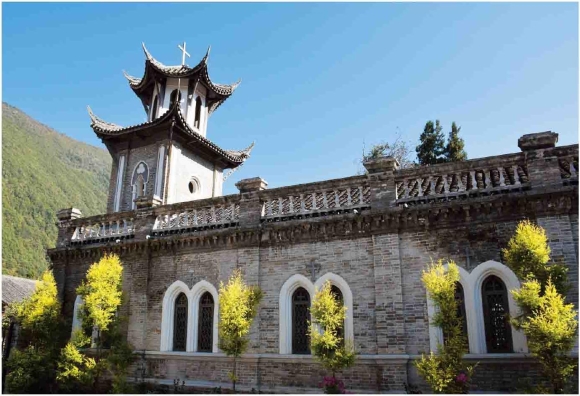 离开贡嘎山后,我们在山下的磨西镇游览了一会。磨西镇位于甘孜州泸定县南部,地处贡嘎山风景区东坡,海螺沟冰川森林公园入口处,属海螺沟风景名胜区外围保护地带,是海螺沟名胜风景区的旅游接待基地和入口。磨西镇距成都约304千米,距泸定52千米,距康定约70千米,现已建成磨西至康定的公路,游完海螺沟可直接到康定游览高原名城。磨西镇是汉族、彝族、藏族聚居地,有清代建筑格调的农舍,由一条自流灌渠所串联的水磨房与灌溉系统组成山地农村的古朴风貌。磨西镇仍然保留着法国人在1918年建的天主教堂和1935年毛泽东等中国共产党中央领导人率领红军经过这里时的宿营地。