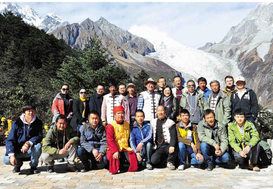 考察队在贡嘎山雪峰下合影(2016年摄)