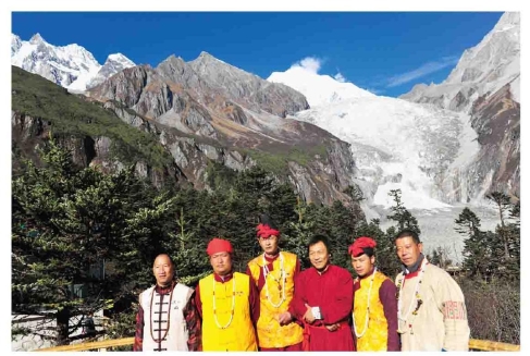 11月4日,我们一行去贡嘎山,晴空如洗,长天蔚蓝。经过甘孜州志办主任刘启蓉主任的协调帮助,得到海螺沟景区管理局的大力支持,我们直接到贡嘎山高处。贡嘎山管理局的朋友们很高兴与我们这些从远方的玉龙雪山下来的纳西人相识。当他们知道纳人的祖先迁徙之路与贡嘎山和山下的磨西镇有密切的关系时,他们更高兴。我们一起谈到今后贡嘎山和玉龙雪山可以结为神山兄弟的前景。贡嘎山通过创办“垃圾银行”等创新方式促进环境保护的做法给我留下了深刻的印象。