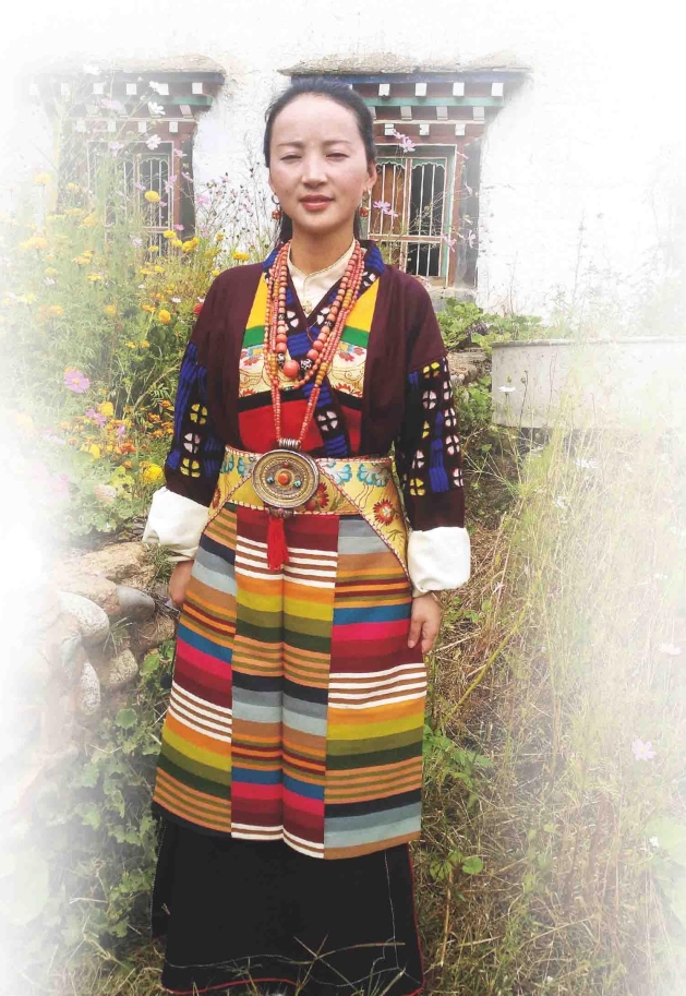 融合了藏族和纳西族服饰特色的妇女服饰(2017年摄)