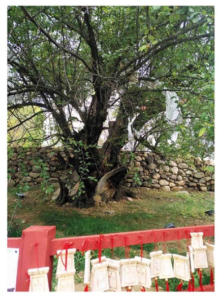 乡城还有闻名遐迩的佛眼菩提树。我在青德村长有这棵菩提树的寺里看到绘有菩提树来历的壁画,菩提树前面挂了很多人们来这里祈福的小木牌。我看到这样的介绍:相传在830多年前,第一世大宝法王噶玛巴杜松钦巴(1110—1173)莅临乡城传法,此地众生得以沐浴佛法甘露的滋润。据说有一日大宝法王在青德给众生讲法时,他手中捻动的佛珠串,突然断落,108颗佛珠“大珠小珠溅玉盘”般地撒落一地,捡拾起来,发现两粒佛珠怎么找也找不到。于是大宝法王祈愿,“将两颗菩提子赐予这祥瑞的土地,愿佛法永驻”。后来,一棵菩提子树长于青德,一棵长于青麦。显然,乡城与噶举派的法缘由来已久,这与明代在此管辖区域大力弘扬噶举派的木氏土司也有密切的关系。