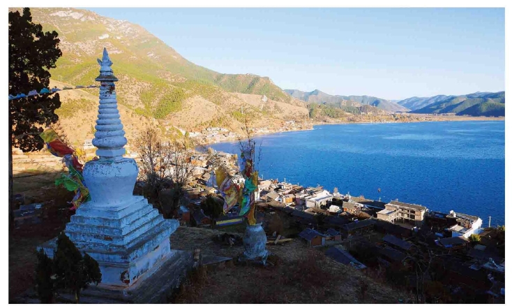 我们第一站首先来到了位于云南宁蒗县和四川盐源县交界地区的达祖村,属于四川盐源县。这是个纳西人居住的村落,现在有150多户,除了5户汉族外都是纳西族。纳西族学者李近春1980年来这里调研时还只有81户。这个村落紧傍着泸沽湖,景色优美,而且纳西族古风还保留得很浓郁。