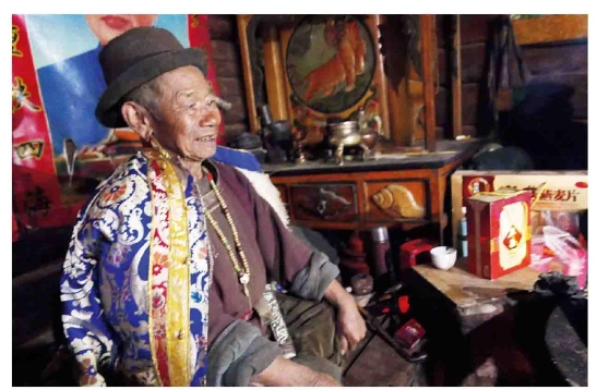 达祖村最资深和有名望的老东巴杨久阿(2016年摄)