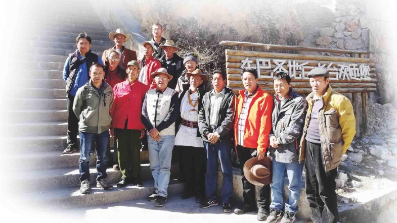考察队和白地东巴以及村民在白水台下合影