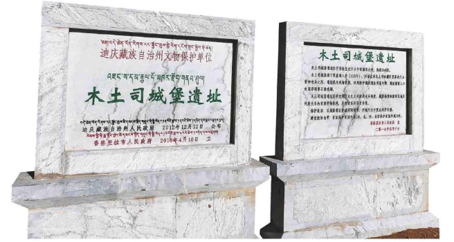 在城堡遗址,香格里拉市政府在这里立了一个碑(2017年摄)