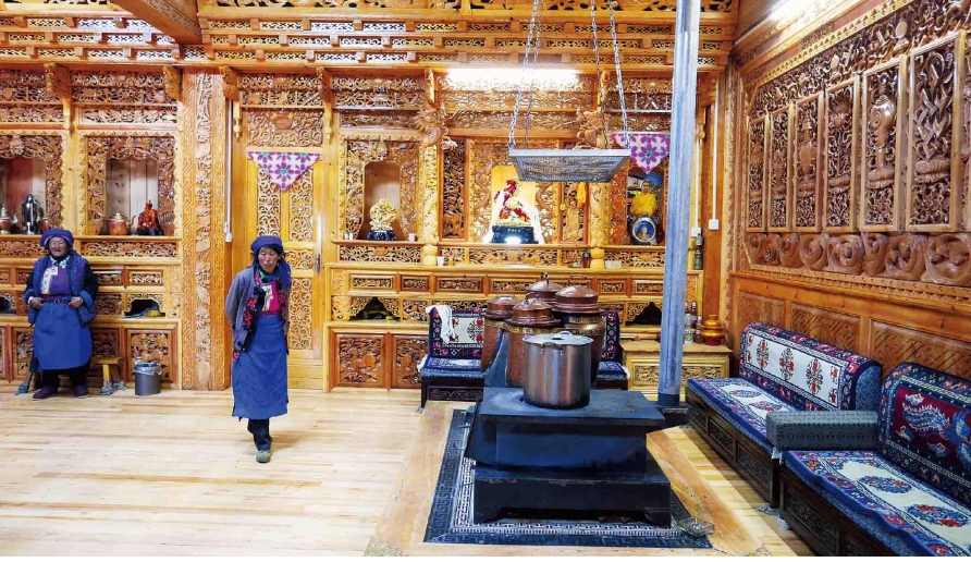 根据王晓松的调查,中甸县(今香格里拉市)小中甸乡公所所在地吉孜宗也是当时遗留下来的纳西自然村。如今村里的藏人平时所操语言是藏语,生活习惯也大多与藏族相同,但在服饰纹样和房屋内部装饰图案等方面还保留着不少纳西族的特点。特别是宗教仪式,仍坚持着完善的东巴仪规;敬养神牛,即使牛到田里吃庄稼也不敢驱赶;每年阴历正月初五,要举行“迎树”宗教活动,是日,全村要讲纳西话,也不敢搭理其他人。“迎树”活动由东巴主持,不许外村人参加。嫁出去的人也不得参加,娶进村的人三年后方有资格参加。根据这些特点,我们也不难追溯其历史根源。向藏族聚居区迁移的纳西人,往往占据海拔较低、气候温暖、适宜生产发展的地区进行开发。无论是巴塘、乡城、盐井,还是德钦、中甸、维西等地,现有纳西族的村落,基本上都处于能种植苞谷、大米的地段。其红大米的种植,在康南地区是有口皆碑的。迪庆州的纳西族占总人口的百分之二十,大部分聚居于河谷地区。[6]