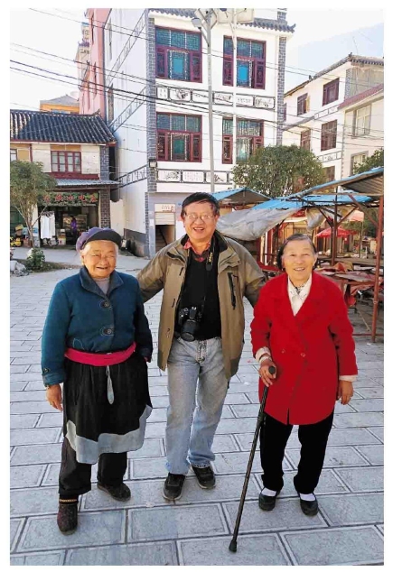 在叶枝街头碰到了两个正在用纳西话聊天的纳西老太太,她们的祖上都是从丽江到这里来的(2017年摄)