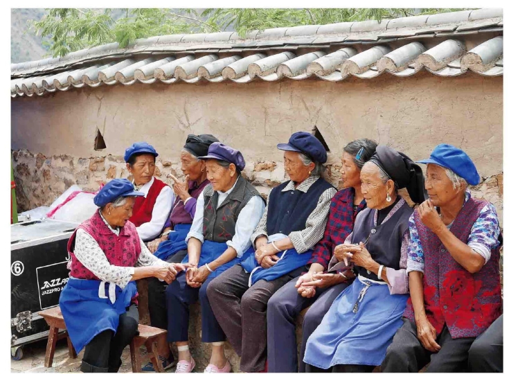 我们想去找一个比较地道的纳西族村,在和建高老师的指点下,我们顺利地找到了大安乡的纳西村子观牛郎村,村子海拔有2200多米,土地肥沃,麦苗青青,气候暖和,山上植被郁郁葱葱,看着赏心悦目。进了村子,路上出来一个纳西老太太和两个中年妇女,带着本地的竹木耙具要去山上拉松毛,我们向这位叫和玉凤的老人家问了很多问题,老人已经73岁了,身子看去很硬朗,她不厌其烦笑容可掬地一一解答。她说她家是从丽江的细里瓦(今属于丽江古城区金山乡)迁来的,现在已经10代了。观牛郎村有100多户人。