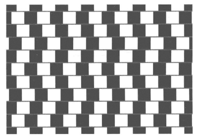 图12 咖啡馆墙错觉[2]。图中的水平线是平行的